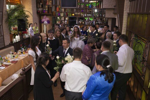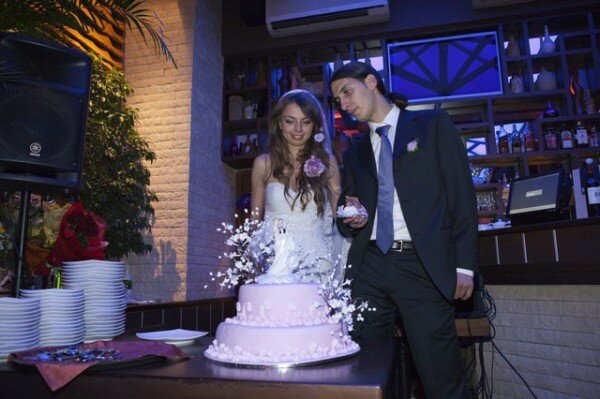 Перед нами была поставлена задача объединить обряды двух культур, сформировать красивую и запоминающуюся программу. Для свадебного торжества мы предложили паре утонченный ресторан «Олива золотая». Ресторан предлагает ливанскую и европейскую кухню, а в интерьер удачно вписаны восточные мотивы. Важно было выдержать марку на самом высоком уровне и отдать дань уважения традициям, ведь почетным гостем был посол Республики Палестина в Российской Федерации.