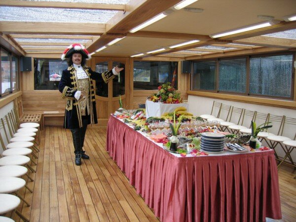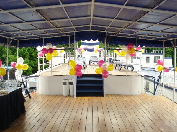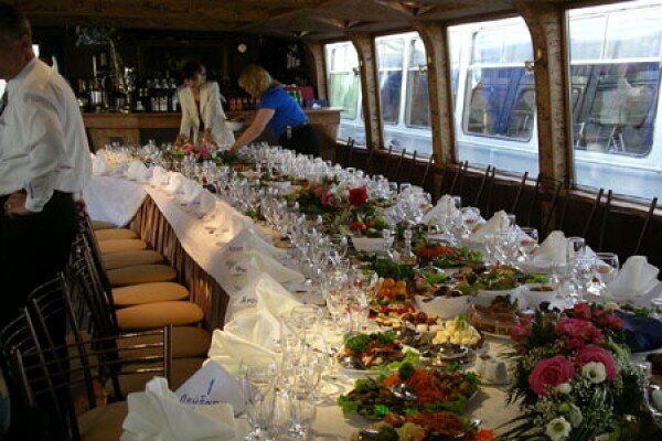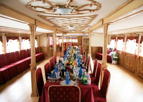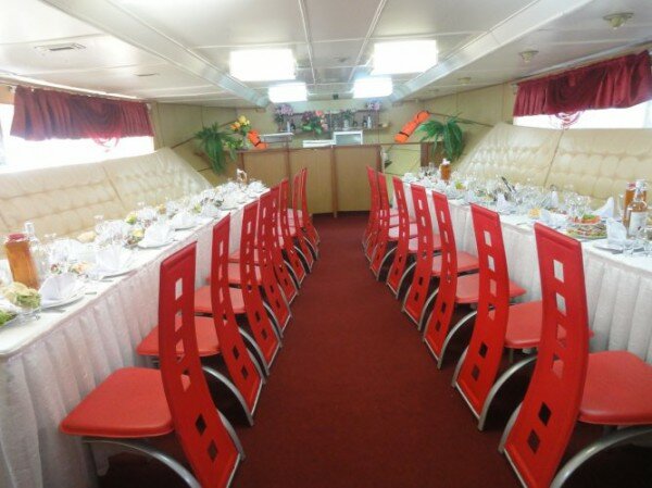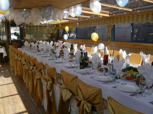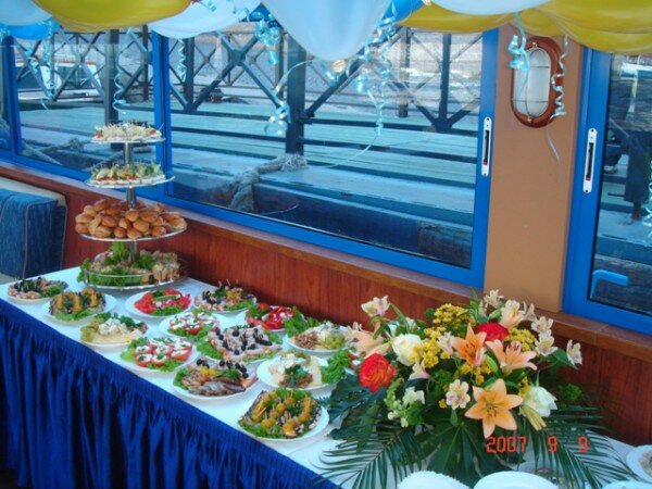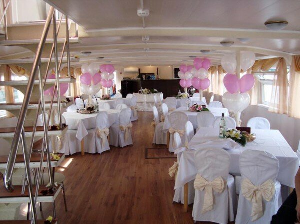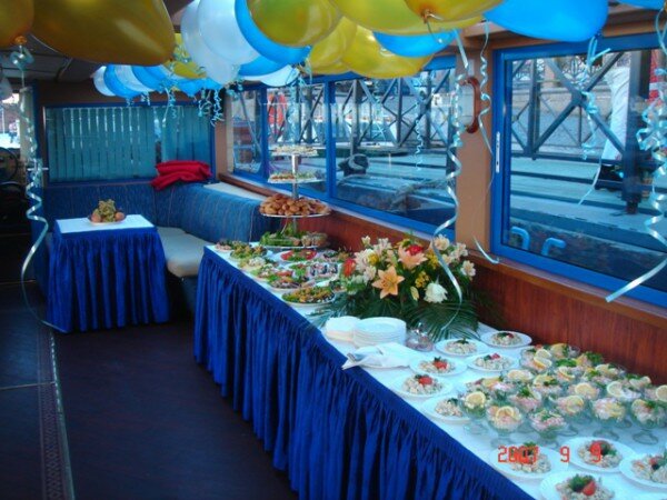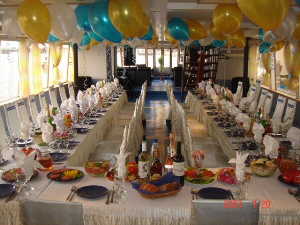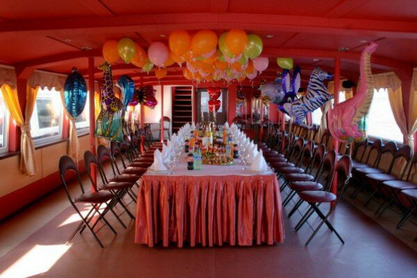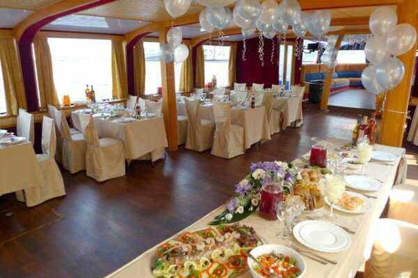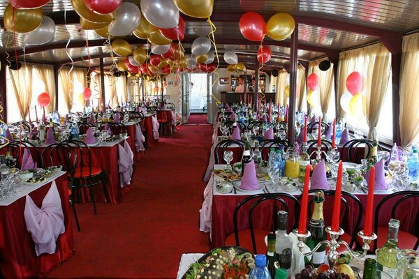 Прогулочный теплоход — отличное место для проведения свадьбы, Дня рождения или корпоративной вечеринки. Отдых на воде замечательно подходит для организации мероприятий в летнее время: мягкий ветерок, плеск волн, ласковое солнце, красивые пейзажи. Романтика и шик с минимальными расходами. Уже сама по себе прогулка на теплоходе создает праздничное настроение. Добавьте к ней музыку, угощения и забавные актерские номера — и получится великолепный праздник.